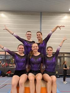 Het team, bestaande uit Lynn van de Meene, Mirthe Ebisch, Mirthe Peeters, Lincy Smeets en Gielke Verhaeg, begon vol vertrouwen aan de wedstrijd. We startten op de balk, waar twee hele sterke oefeningen werden neergezet. Daarna gingen we door naar de vloer, die eveneens uitstekend verliep. Op dat moment stonden we zelfs voorlopig eerste.