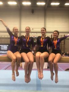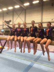 Op zondag begon niveau 5 met Suus Verbong, Dyona Driessen, Mila Verhaeg, Roos Geboers, Felin Kahveci en Ilse van Kruisbergen. Ilse kon helaas niet meedoen, maar het team turnde fantastisch en werd dik verdiend eerste. Ze pakten bovendien de seizoenswinst.